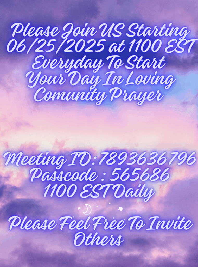 Good afternoon all , Hope everyone is having an Amazing Monday. Today is a new start to not just a day but a Beautiful, Blessed week. It’s been a minute since I last wrote to you , please know there is Love and Care for each one of you. We recently implemented  daily prayer time of  11 Eastern/ 10 A Central on Zoom every day of the week. It has been a Beautiful way to start a very Blessed and Grateful morning. Please feel free to join us and share your thoughts and/ or prayers from your Higher Power. Prayer time is anywhere from 10 minutes to 30 to start our day together with our Father.